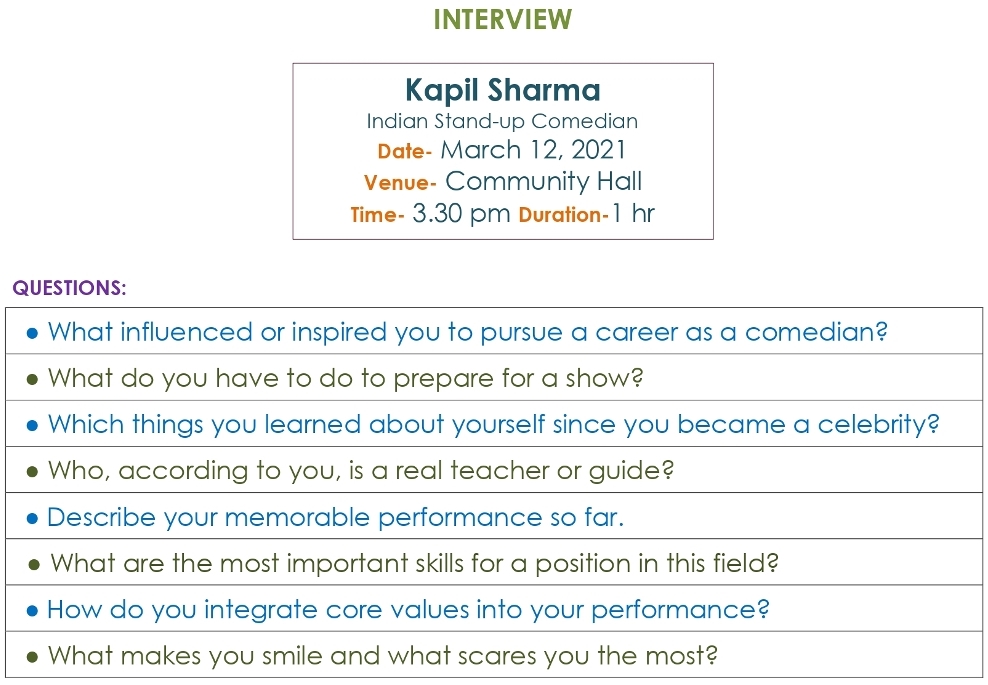 Taking an Interview is a skillful act. We have to perform the Role of Interviewer. It proves our capability and skill in interacting with interviewees. The way we ask questions, and the way we enable the Interviewee to think and imagine, really tests our linguistic insights.